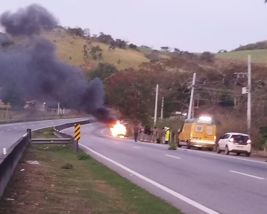 Um carro pegou fogo na manhã desta segunda-feira (28) no km 85 da BR 101, no distrito de Ibitioca, em Campos. Um trecho da rodovia foi interditado após o início do incêndio. As chamas foram controladas pelo Corpo de Bombeiros, mas o veículo ficou bem danificado. A concessionária responsável pela rodovia informou que o incêndio provocou o bloqueio total da pista sul. Um congestionamento foi formado e o trânsito foi liberado após cerca de uma hora. Ainda não se sabe o que provocou o fogo.