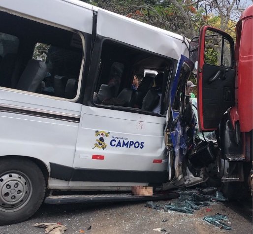 Doze pessoas ficaram feridas em um acidente registrado na tarde desta quarta-feira (29) no km 42 da BR-101, no distrito de Travessão, em Campos. A colisão envolveu uma van do transporte alternativo e um caminhão.