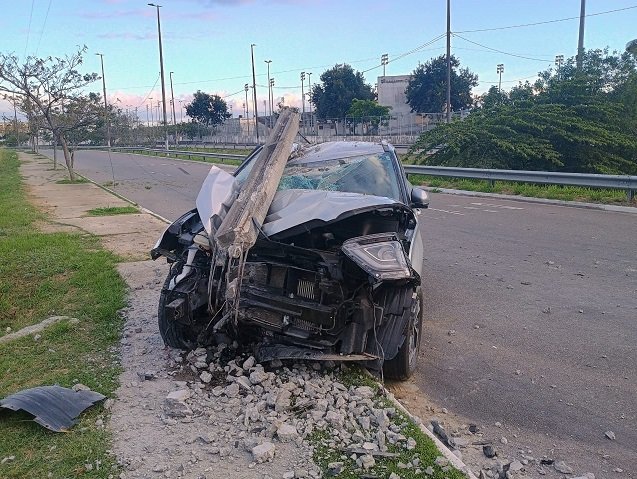 O impacto foi tão forte que o poste caiu na pista. O acidente aconteceu perto do Cepop e o trânsito teve que ficar parcialmente interditado até que a situação fosse normalizada no local.