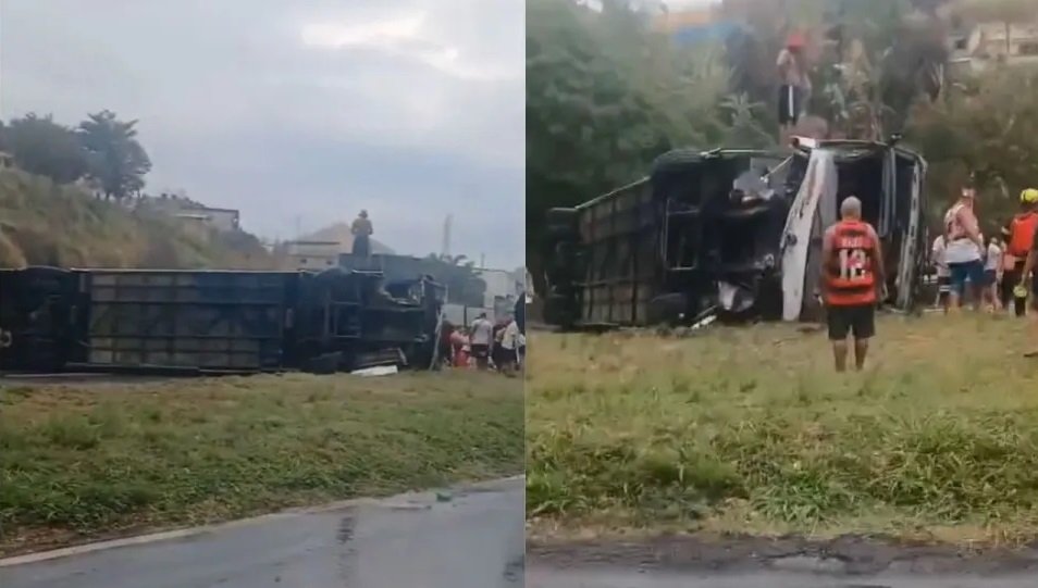 Um ônibus que transportava torcedores do Flamengo tombou na Rodovia Presidente Dutra, no km 282, altura de Barra Mansa (RJ), na tarde desta segunda-feira (27).